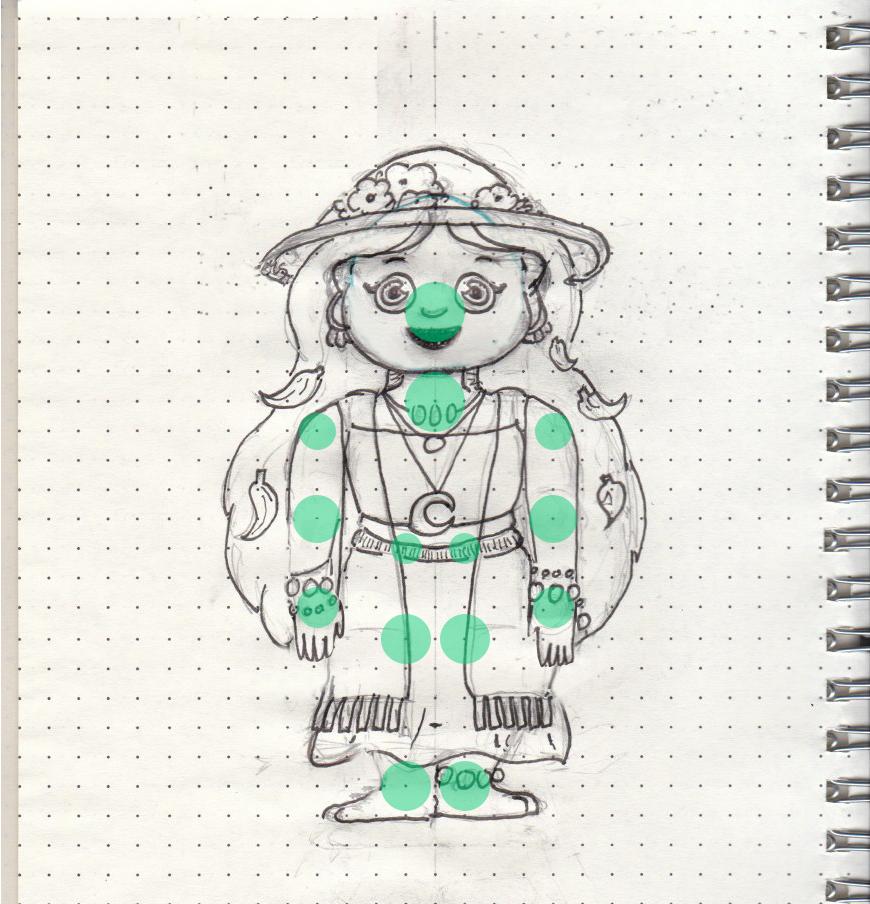 I sketched Willow onto graphed paper to get her proportions then added in guides for the joints.